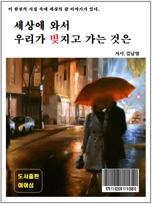 머리말삶은 하루의 생활이며인생은 하루하루의 삶을 기록한 일기장이다삶은 하루하루의 시간을 지우며 사는 것이며인생은 전체의 시간을 지우며 사는 것이다삶은 종착역이 없다 그 누군가도